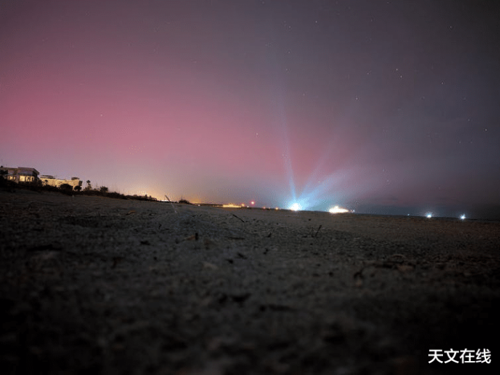 在 ESCAPADE 发射前两天,肯尼迪航天中心 36 号发射复合体明亮的白光上空出现了紫色的北极光 —— 此次 发射因 太阳活动而推迟。 格温汉 利